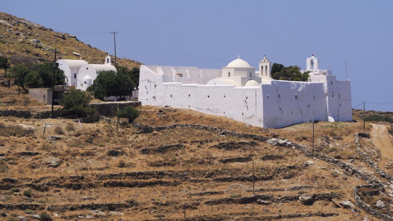 Η Μονή είναι αφιερωμένη στους Αρχάγγελους Μιχαήλ και Γαβριήλ, που είναι και οι προστάτες του νησιού, και η εικόνα τους που μεταφέρθηκε από την Κύπρο θεωρείται θαυματουργή. Ο ναός της είναι ρυθμού τρίκογχου, μονόχωρου με τρούλο.