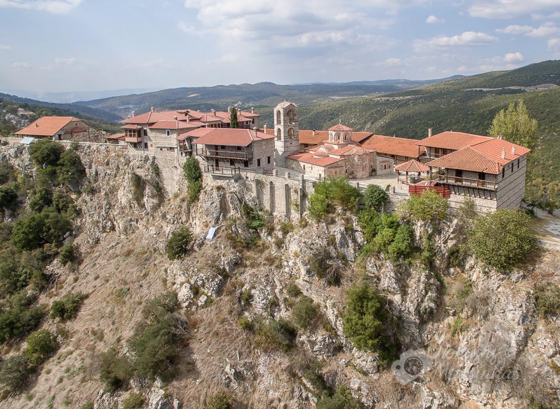 Εγκαθίσταται τελικά σε ένα δυσπρόσιτο λόφο, πλάι στην κοίτη του Αλιάκμονα. Ονομάζεται λόφος του Καλλιστράτου, από το όνομα του πρώτου ασκητή που μόνασε εκεί.