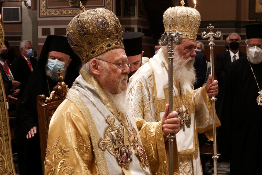Από την πλευρά του ο κ.Ιερώνυμος αναφέρθηκε στον ρόλο του Φαναρίου αλλά και στα 30 χρόνια παρουσίας του Βαρθολομαίου στο τιμόνι της Εκκλησίας: «Οφείλουμε, ιδιαιτέρως φέτος που στην Πατρίδα μας εορτάζουμε τα 200 έτη από την Εθνική Παλιγγενεσία μας, να υπογραμμίσουμε τη συμβολή του Οικουμενικού Πατριαρχείου στη διατήρηση της πίστης κα της ταυτότητας των υπόδουλων Ρωμιών. Και οι Πανέλληνες είμεθα ευγνώμονες προς το Πατριαρχείο μας γι’ αυτό», τόνισε.