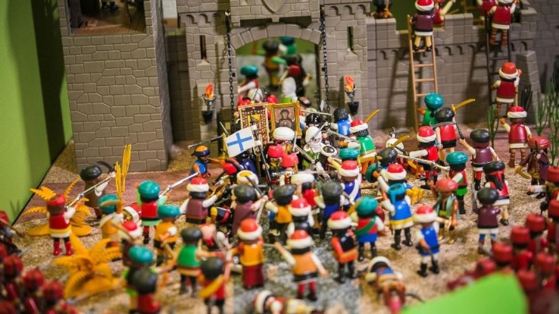 Ο Όρκος των Φιλικών, η Άλωση της Τριπολιτσάς, η Έξοδος του Μεσολογγίου, η Φυγή των Παργινών, είναι κάποια από τα διοράματα που δεσπόζουν στην έκθεση. Πρωταγωνιστές της Επανάστασης, Έλληνες, Φιλέλληνες και Οθωμανοί, άντρες και γυναίκες που έπαιξαν σημαντικό ρόλο στην εξέλιξη των γεγονότων, παρουσιάζονται σε φιγούρες PLAYMOBIL, συνοδευόμενοι από σύντομο βιογραφικό τους.