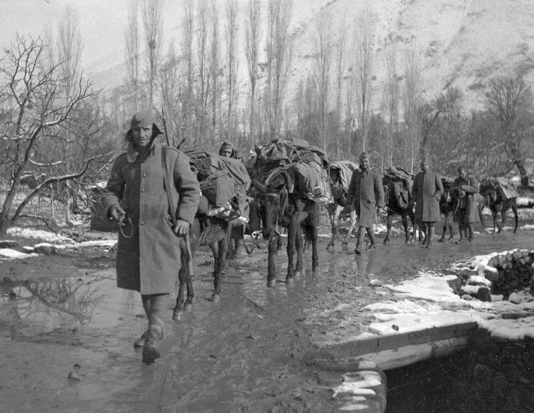 Ήταν φορές που εσέρνανε μαζί τους κι αιχμαλώτους, μόλις πιασμένους λίγες ώρες πριν, στα ξαφνικά γιουρούσια που κάναν τα περίπολα. Βρωμούσανε κρασί τα χνότα τους, κι οι τσέπες τους γιομάτες κονσέρβα ή σοκολάτες. Όμως εμείς δεν είχαμε, ότι κομμένα τα γιοφύρια πίσω μας, και τα λίγα μουλάρια μας, κι εκείνα ανήμπορα μέσα στο χιόνι και στη γλιστράδα της λασπουριάς.
