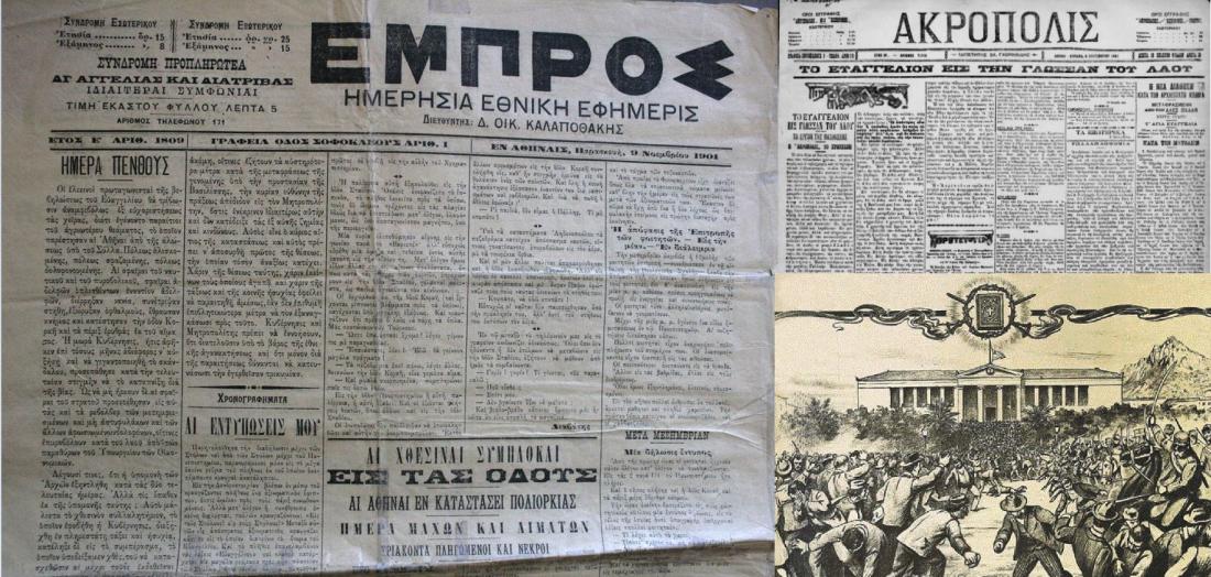 1901.... Ανάστατη η Αθήνα μετά τη μετάφραση του Ευαγγελίου στη δημοτική γλώσσα από τον Αλέξανδρο Πάλλη, ηγετικό στέλεχος του δημοτικισμού.