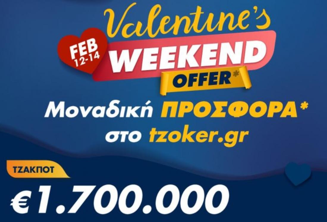 Το ΤΖΟΚΕΡ γιορτάζει τον Άγιο Βαλεντίνο με το Valentine’s Weekend και μια μοναδική προσφορά στο tzoker.gr, για την οποία ισχύουν όροι και προϋποθέσεις.