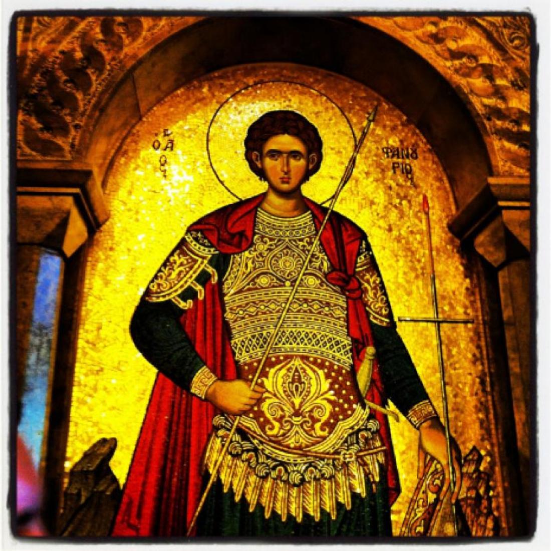 Μια από αυτές, η πιο καλοδιατηρημένη λέει η παράδοση, ήταν ενός Αγίου ο οποίος φορούσε ρωμαϊκά στρατιωτικά ρούχα και κρατούσε ένα κερί κι έναν Σταυρό.