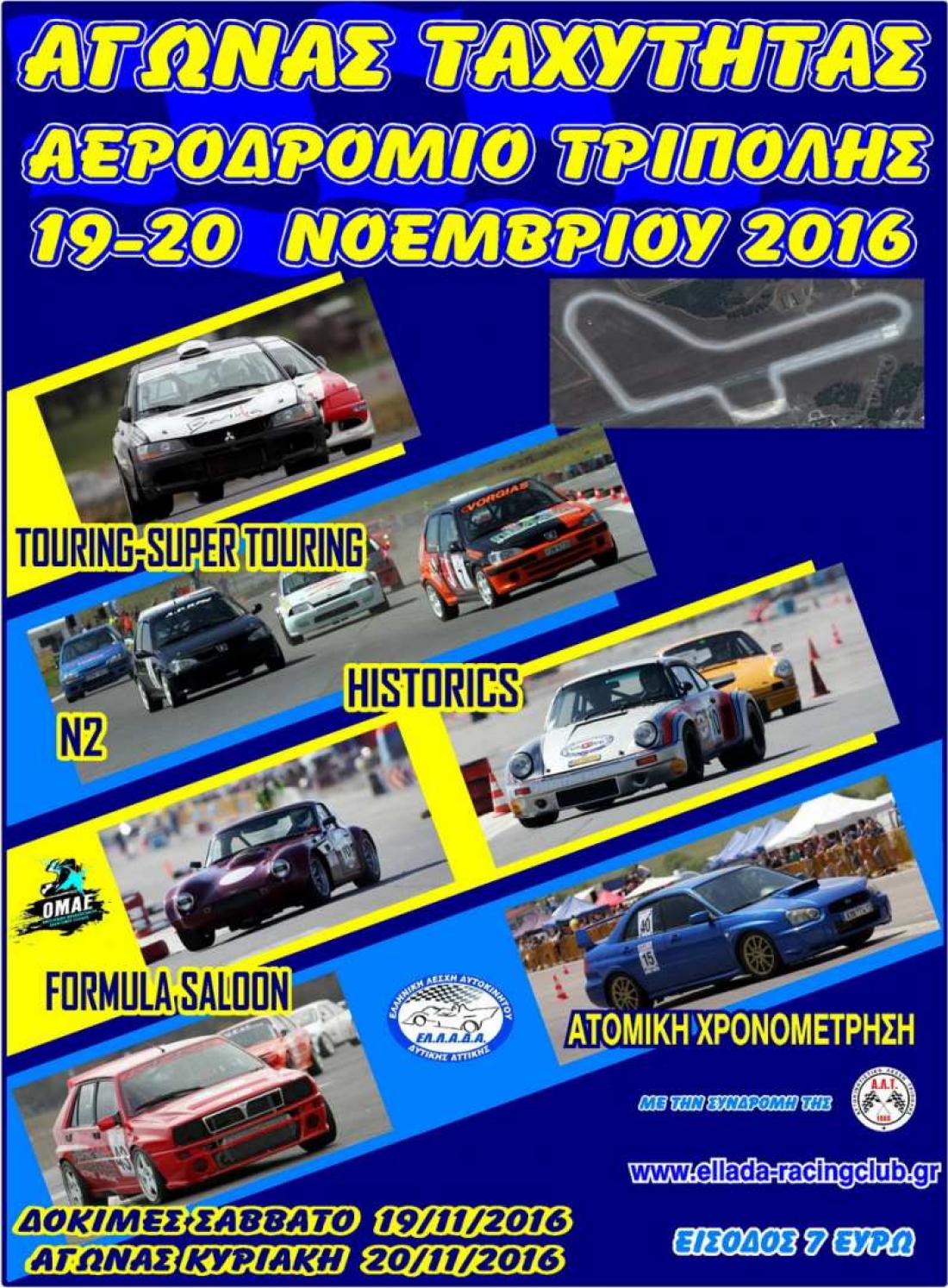 Το εγχείρημα της επιστροφής των Αγώνων Ταχύτητας στο προσκήνιο του ελληνικού μηχανοκίνητου αθλητισμού βρίσκει ολοένα και περισσότερους υποστηρικτές με το πέρασμα των ημερών, και όσο πλησιάζει η ημερομηνία διεξαγωγής του αγώνα στο Στρατιωτικό Αεροδρόμιο της Τρίπολης. Ο αγώνας θα γίνει στο Στρατιωτικό Αεροδρόμιο της Τρίπολης.