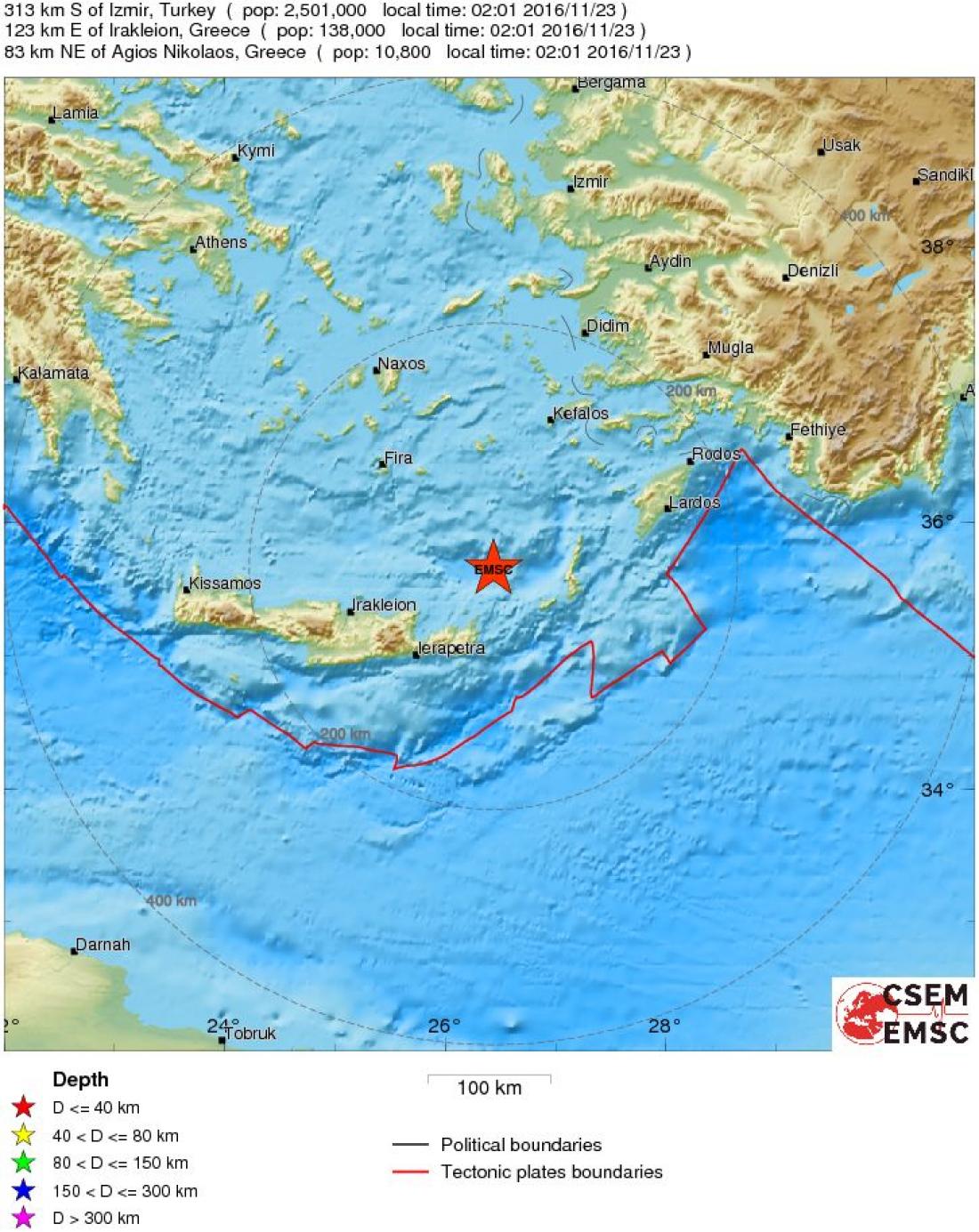 Αισθητός σεισμός τα ξημερώματα (23/11) ανοιχτά της Κρήτης