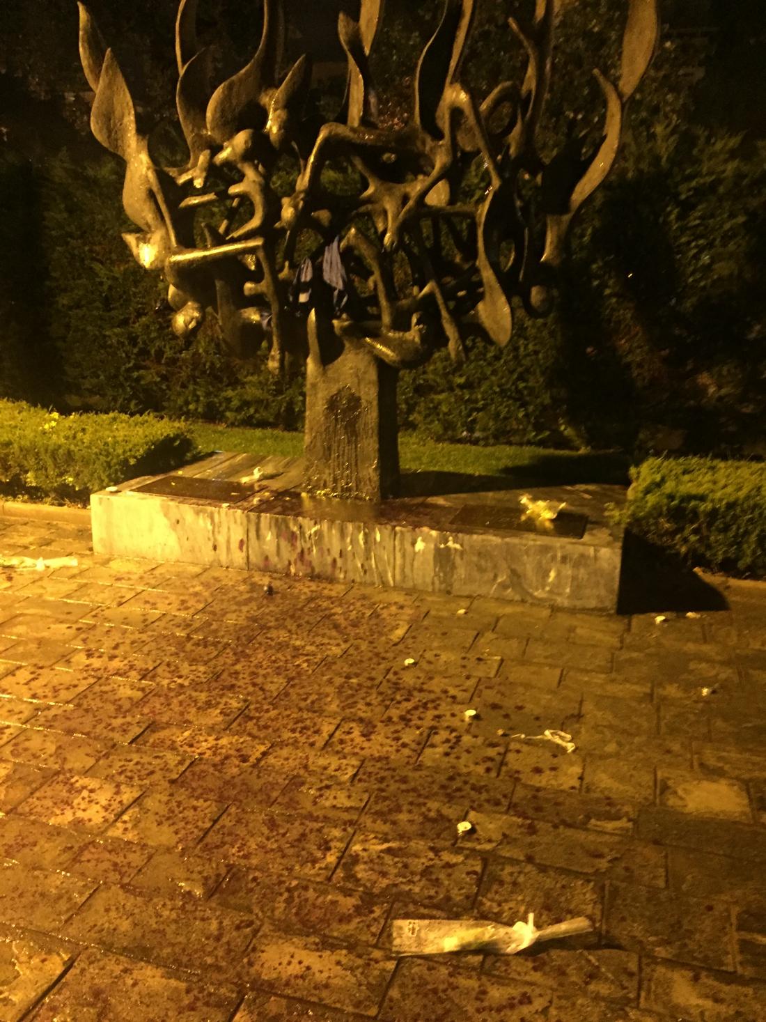 Η Ισραηλιτική Κοινότητα τονίζει ακόμα πως "ο εφησυχασμός, η άγνοια και η ανοχή, απέναντι σε τέτοιες συμπεριφορές ανοίγουν δυστυχώς σε αυτούς που σήμερα βάφουν κόκκινο ένα μνημείο που δημιουργήθηκε για να υπενθυμίζει τις συνέπειες μιας εποχής κατά την οποία οι ανθρωπιστικές αξίες καταβαραθρώθηκαν και αθώοι άνθρωποι στιγματίστηκαν και δολοφονήθηκαν στο βωμό φασιστικών ιδεολογιών, το δρόμο για ένα επόμενο χειρότερο βήμα".