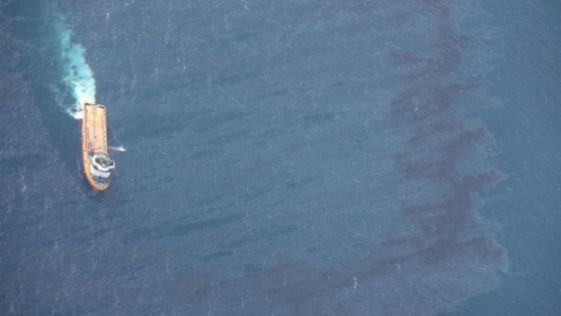 Στη θαλάσσια περιοχή όπου βρίσκεται σε εξέλιξη το συμβάν δεν έχει παρατηρηθεί μέχρι στιγμής θαλάσσια ρύπανση.