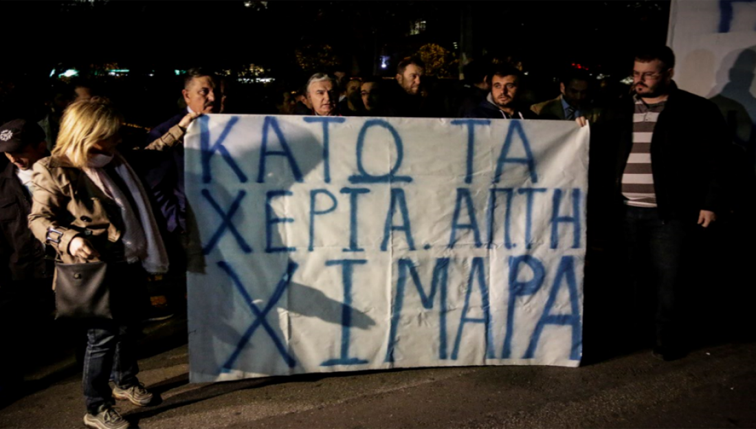 Συγκέντρωση διαμαρτυρίας κατά των αλβανικών μεθοδεύσεων στη Χειμάρρα, πραγματοποιήθηκε το απόγευμα της Πέμπτης (2/11) έξω από την Αλβανική Πρεσβεία επί της λεωφόρου Κηφισίας.