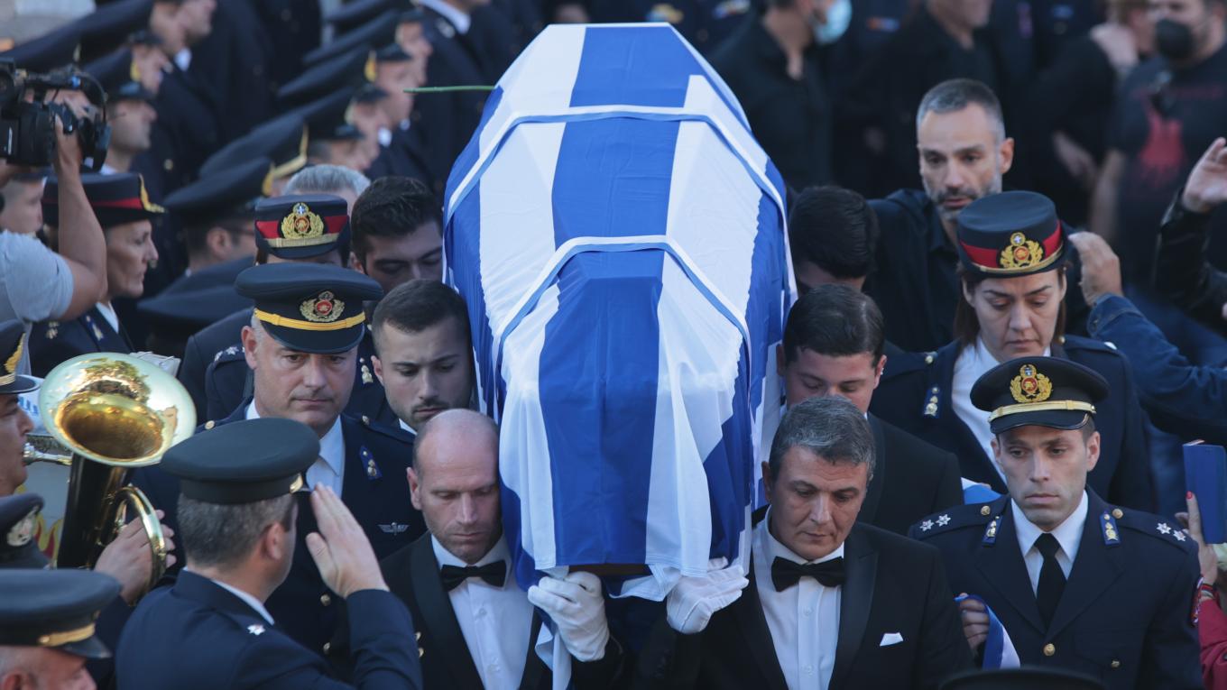 Η σορός του δύο φορές «αργυρού» Ολυμπιονίκη έφτασε καλυμμένη με την ελληνική σημαία ενώ πλήθος κόσμο μαζεύτηκε για να πει το τελευταίο αντίο.