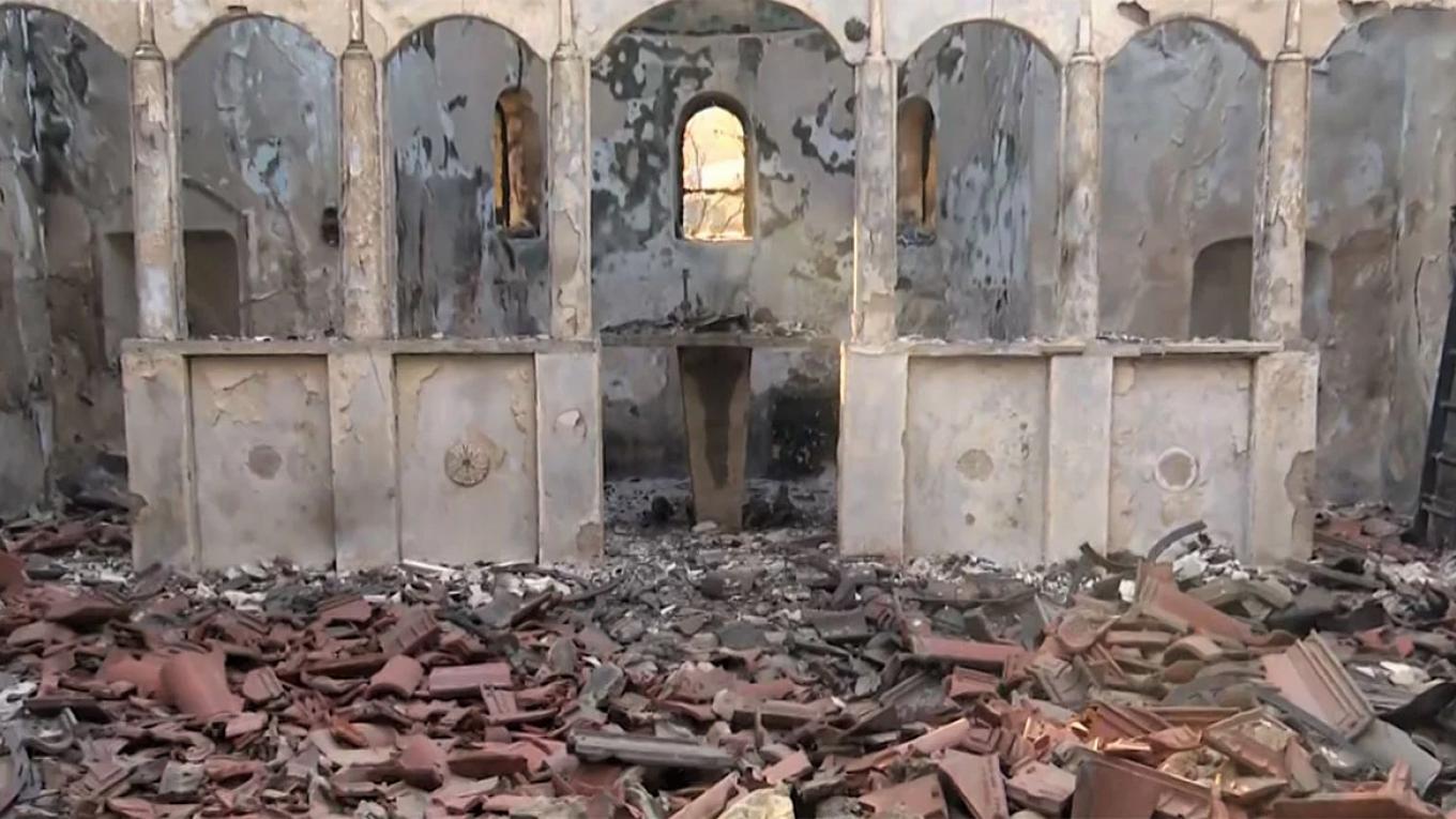 Οι κάτοικοι αντίκρυσαν σήμερα την θλιβερή εικόνα της καταστροφής στην εκκλησία του χωριού τους, με το μόνο που είχε μείνει στη θέση του ήταν ο σταυρός στην κορυφή του ναού.