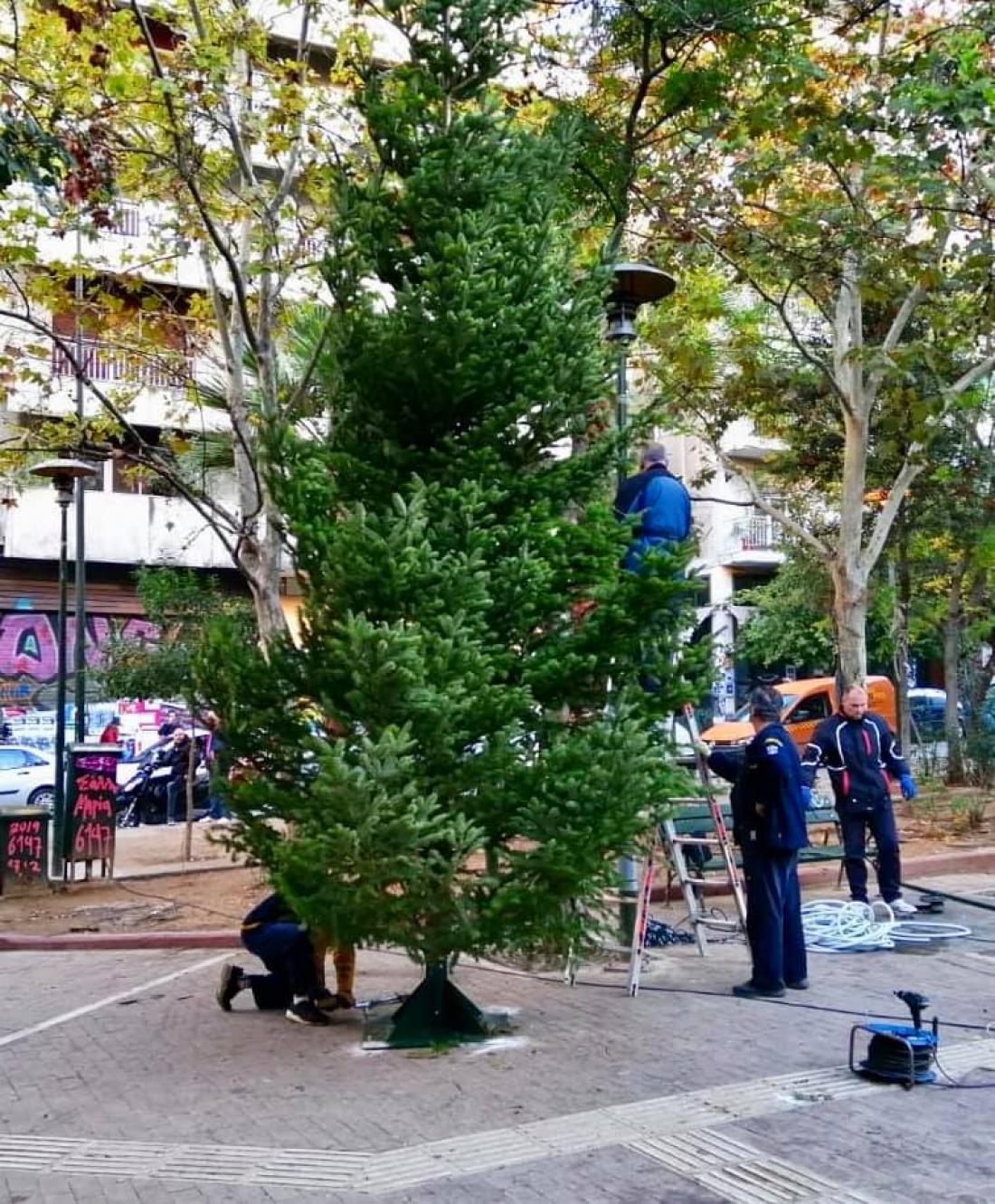 Ένα χριστουγεννιάτικο στολισμένο και φωτισμένο έλατο τοποθέτησαν το πρωί στην πλατεία Εξαρχείων συνεργεία του Δήμου Αθηναίων, τα οποία προχώρησαν ταυτόχρονα σε παρεμβάσεις καθαρισμού και αποκατάστασης του χώρου.