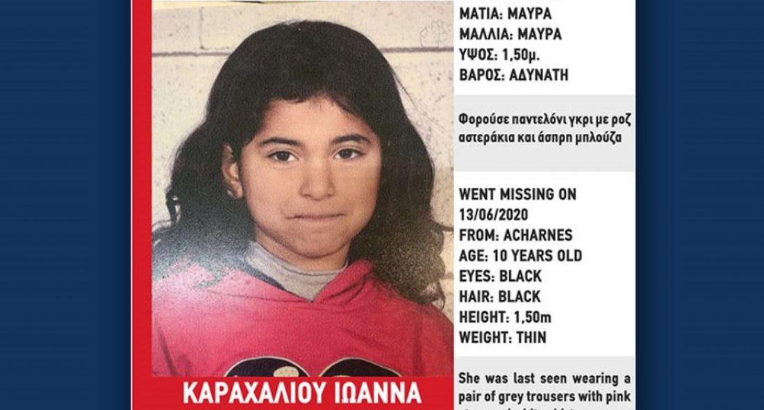 Η μικρή που εξαφανίστηκε το απόγευμα του Σαββάτου, στις 18:30, είναι η Ιωάννα Καραχάλιου . Έχει μαύρα μαλλιά, μαύρα μάτια, ύψος 1.50μ. και είναι αδύνατη. Την ημέρα που εξαφανίστηκε φορούσε γκρι παντελόνι με ροζ αστεράκιακαι άσπρα παπούτσια.