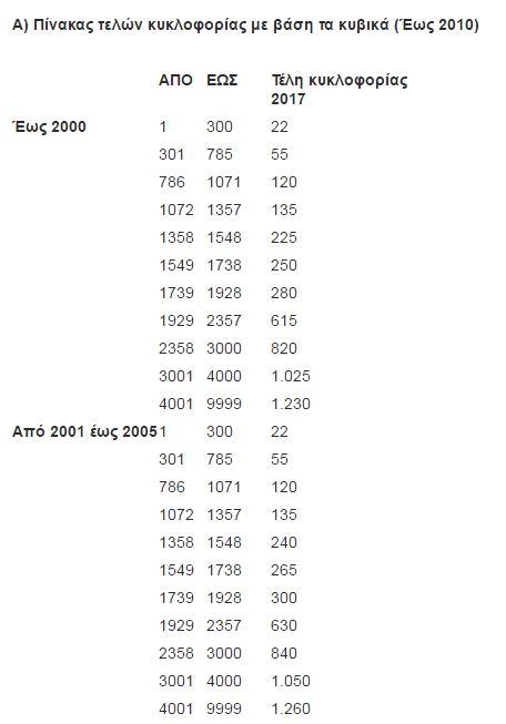 Τα τέλη κυκλοφορίας του 2017