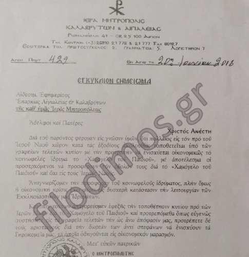Νέο χτύπημα του μητροπολίτη Αιγιαλείας και Καλαβρύτων Αμβρόσιου, ο οποίος εξέδωσε ανακοίνωση κατά του "ΧΑΜΟΓΕΛΟΥ ΤΟΥ ΠΑΙΔΙΟΥ".