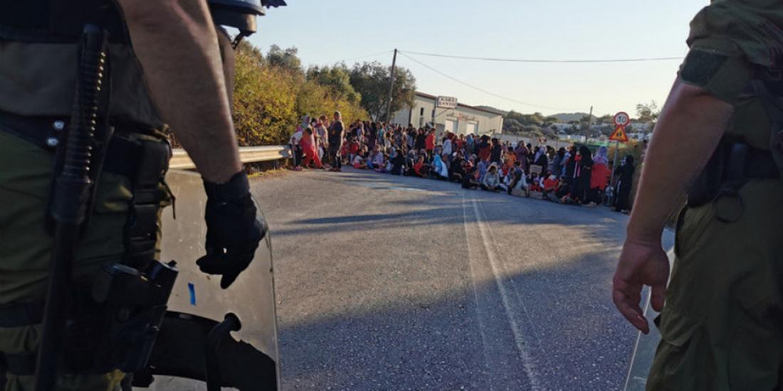 Ισχυρές δυνάμεις της αστυνομίας έχουν αναπτυχθεί στην περιφερειακή οδό της Μόριας ώστε να μην επιτρέψουν στους αιτούνες άσυλο να κατέβουν στην πόλη της Μυτιλήνης.