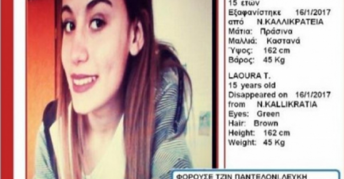 Η δήλωση έγινε το βράδυ της Δευτέρας στο ΑΤ Νέας Καλλικράτειας. Όπως ανέφερε ο - αλβανικής καταγωγής - πατέρας, η κόρη του φαίνεται πως πήγε κανονικά στο σχολείο το πρωί, άλλα δεν επέστρεψε ποτέ στο σπίτι.