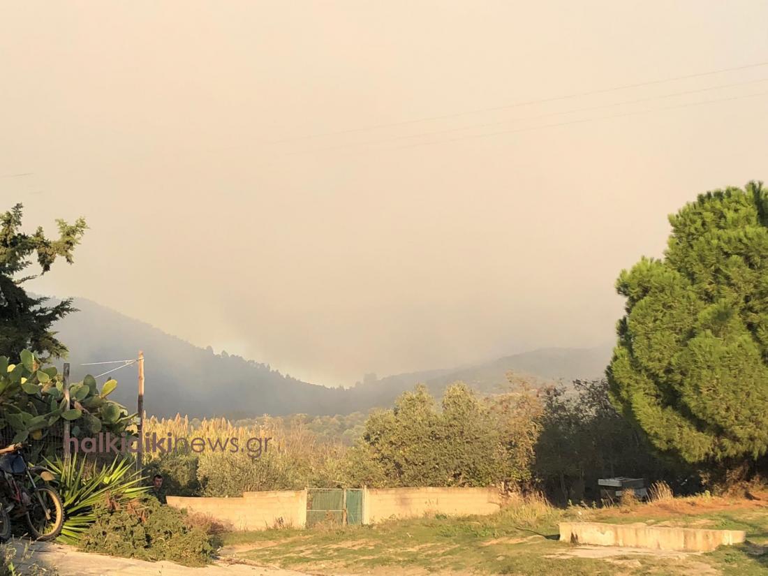Το μέτωπο της φωτιάς είναι μεγάλο, λόγω των ισχυρών ανέμων, ενώ την κατάσταση δυσχεραίνει η διακοπή ηλεκτροδότησης στην περιοχή, όπως ανέφερε στο ραδιόφωνο του Αθηναϊκού - Μακεδονικού Πρακτορείου Ειδήσεων "Πρακτορείο FM" ο αντιδήμαρχος Σιθωνίας, Πάρης Ντέμπλας.