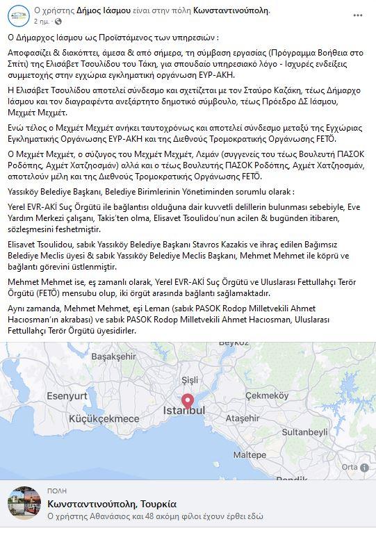 Ο Μεχμέτ Μεχμέτ, ο σύζυγος του Λεμάν (συγγενείς του τέως Βουλευτή ΠΑΣΟΚ Ροδόπης, Αχμέτ Χατζηοσμάν) αλλά και ο τέως Βουλευτής ΠΑΣΟΚ Ροδόπης, Αχμέτ Χατζηοσμάν, αποτελούν μέλη και της Διεθνούς Τρομοκρατικής Οργάνωσης FETÖ».