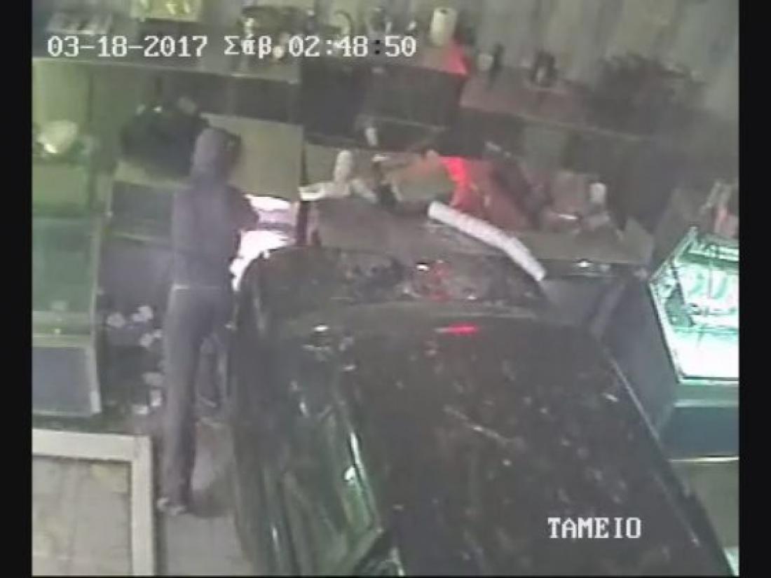 Το αυτοκίνητο βέβαια ήταν κλεμμένο και αλίμονο στον καταστηματάρχη για τη ζημιά που έπαθε. Το συμβάν έγινε το βράδυ του Σαββάτου στις 2.48 και δεν κράτησε πάνω απο ένα λεπτό.