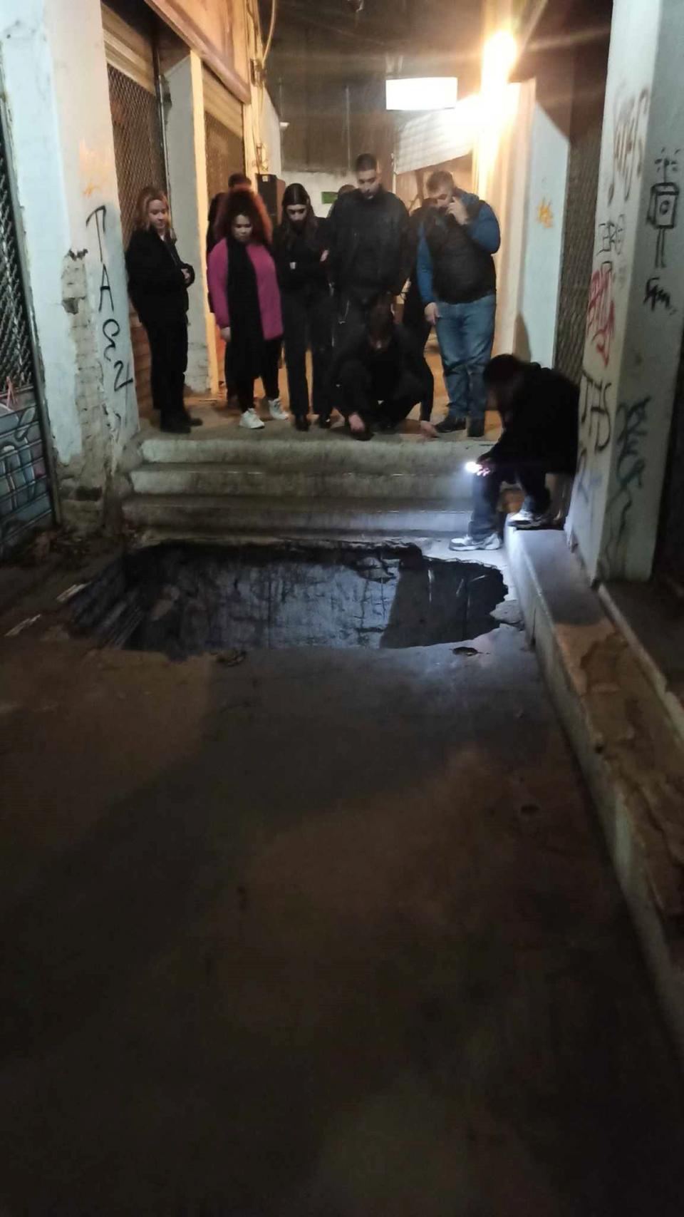 Μία τρύπα περίπου τριών μέτρων άνοιξε στο οδόστρωμα, στη στοά του Μπιτ Παζάρ στη Θεσσαλονίκη, λίγο πριν από τη 1 τα ξημερώματα, με αποτέλεσμα να «καταπιεί» έναν 19χρονο και μία συνομήλική του. Αναστατωμένος ο κόσμος που βρισκόταν στην περιοχή κάλεσε το ΕΚΑΒ και την Πυροσβεστική, ωστόσο μέχρι να καταφθάσει, καταστηματάρχης προσέφερε μία αναδιπλούμενη σκάλα από την οποία κατάφεραν να βγουν στην επιφάνεια τραυματισμένοι οι δύο νεαροί.