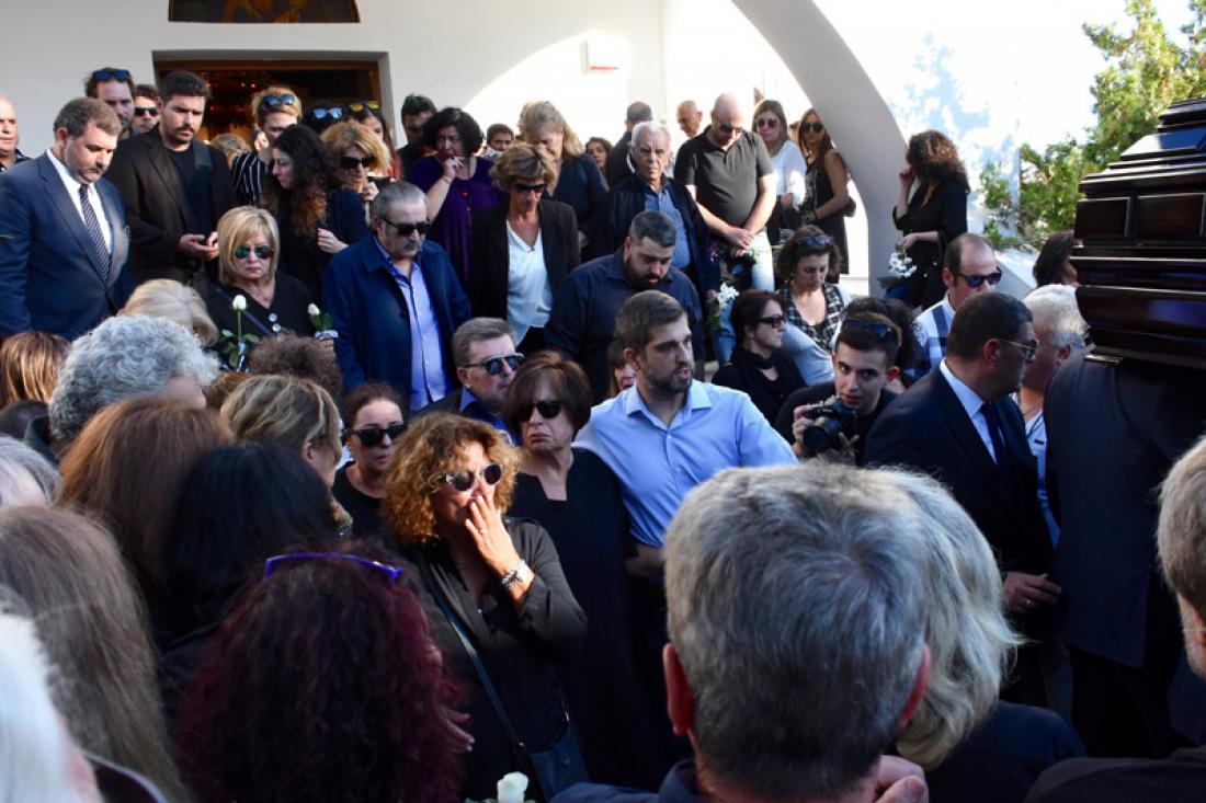 Με δάκρυα στα μάτια, η Χαρούλα Αλεξίου αποχαιρέτησε τον αδελφό της στο Νεκροταφείο του Παλαιού Φαλήρου, μη μπορώντας να πιστέψει τον χαμό του, έτσι ξαφνικά στον ύπνο του.