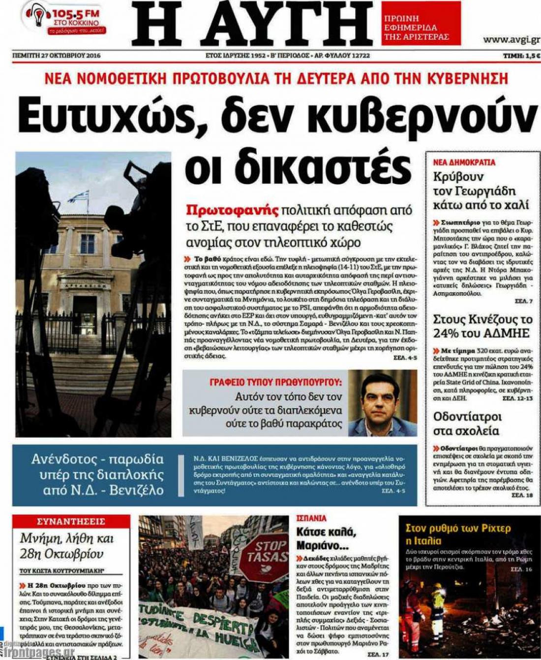 Απολύτως ενδεικτικός είναι ο τίτλος της ''Αυγής'': Ευτυχώς δεν κυβερνούν οι δικαστές .