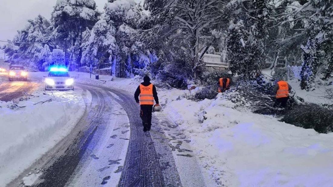 Αποκαθίστανται τα προβλήματα στους δρόμους που είχαν κλείσει από το χιόνι στις περιοχές της Αττικής.