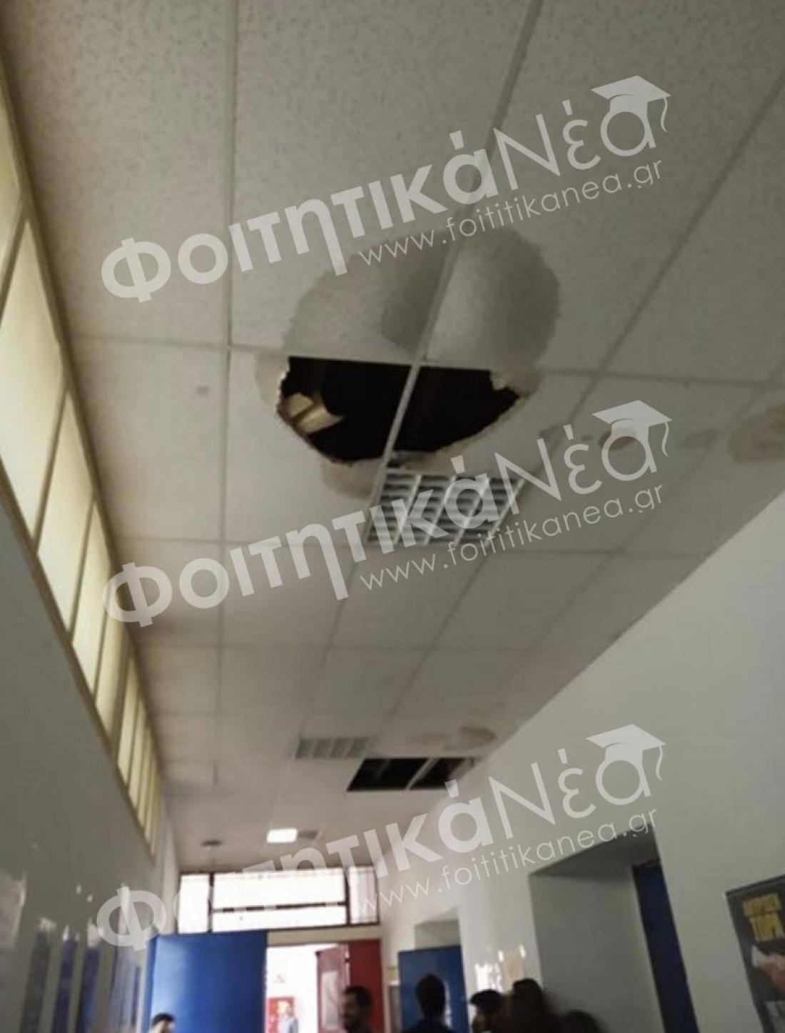 Το περιστατικό κατήγγειλε η φοιτητική παράταξη ΑΡ.ΑΓ.Ε. που συμμετέχει στον Φοιτητικό Σύλλογο Ηλεκτρολόγων-Μηχανολόγων του ΑΠΘ. «Τη Δευτέρα 17/2/20, στο διάδρομο των Μηχανολόγων Μηχανικών του ΑΠΘ, έπεσε κυριολεκτικά ένα κομμάτι από το ταβάνι, αφήνοντας μια ευμεγέθη τρύπα, την ώρα που είχε μάθημα το τρίτο έτος. Το αστείο με τις συνθήκες σπουδών μας στη σχολή πρέπει να τελειώσει», αναφέρει στην ανακοίνωσή της η παράταξη.