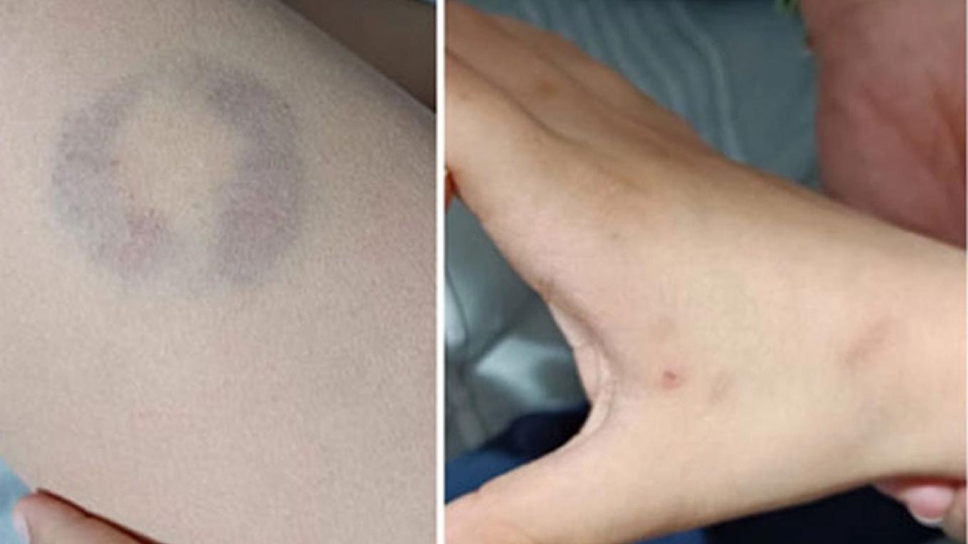 Η μητέρα του μαθητή εξιστόρησε τα όσα συνέβησαν. «Την περασμένη Τρίτη, όταν πήγα να πάρω το παιδί μου από το σχολείο, είδα με έκπληξη ότι αυτό έφερε γρατσουνιές πίσω από το δεξί αυτί του και στους καρπούς των χεριών του. Ρώτησα τη δασκάλα του γιου μου τί συνέβη, καθώς το παιδί μου όταν έφυγε το πρωί από το σπίτι μας δεν έφερε κάποιο τραύμα. Η ίδια μου απάντησε ότι τα συγκεκριμένα τραύματα προκλήθηκαν από την προσπάθεια που έκανε η Διευθύντρια και δασκάλα του σχολείου να απομακρύνει από κοντά της το παιδί μου, το οποίο της είχε πιάσει τα μαλλιά της. Η έκπληξή μου συνεχίστηκε όταν έφτασα σπίτι μας και άλλαξα ρούχα στο γιο μου, και πήγα να τον κάνω μπάνιο, όπου εκεί, κατεβάζοντας τη φόρμα του, είδα μια τεράστια μελανιά – δαγκωματιά στο μέσο του ποδιού του, μάλιστα πρόκειται για μια μελανιά όπου φαίνονται ίχνη δοντιών. Αυτό με έκανε αμέσως να καταλάβω ότι κάποιος δάγκωσε το γιο μου δυνατά στο σημείο αυτό.