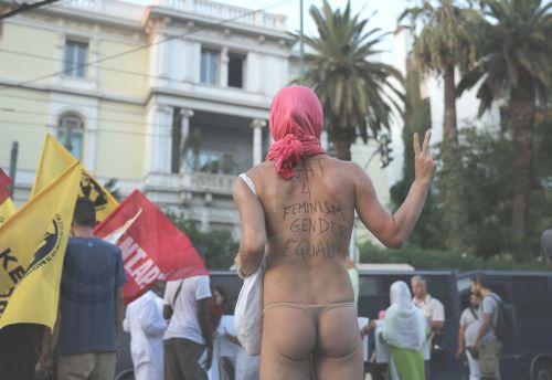 Αθήνα: Με εσώρουχο και μπουρκίνι κατά της απαγόρευσης (ΦΩΤΟ)