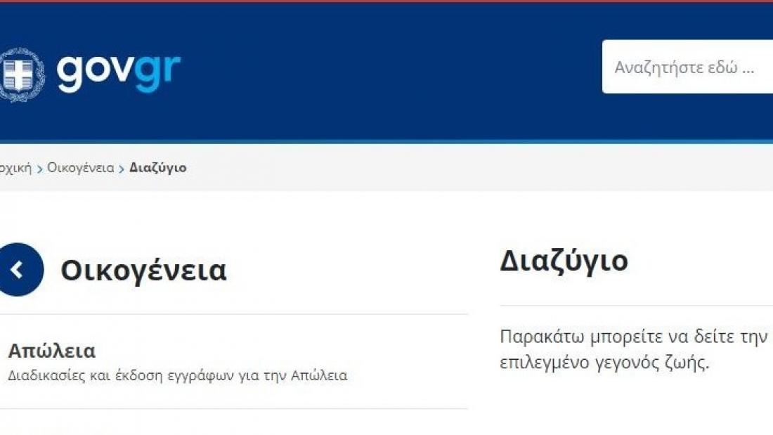Δημοσιεύθηκε στο ΦΕΚ η απόφαση σχετικά με την ηλεκτρονική υπηρεσία έκδοσης άυλου συναινετικού διαζυγίου μέσω της Ενιαίας Ψηφιακής Πύλης της Δημόσιας Διοίκησης (gov.gr- ΕΨΠ).