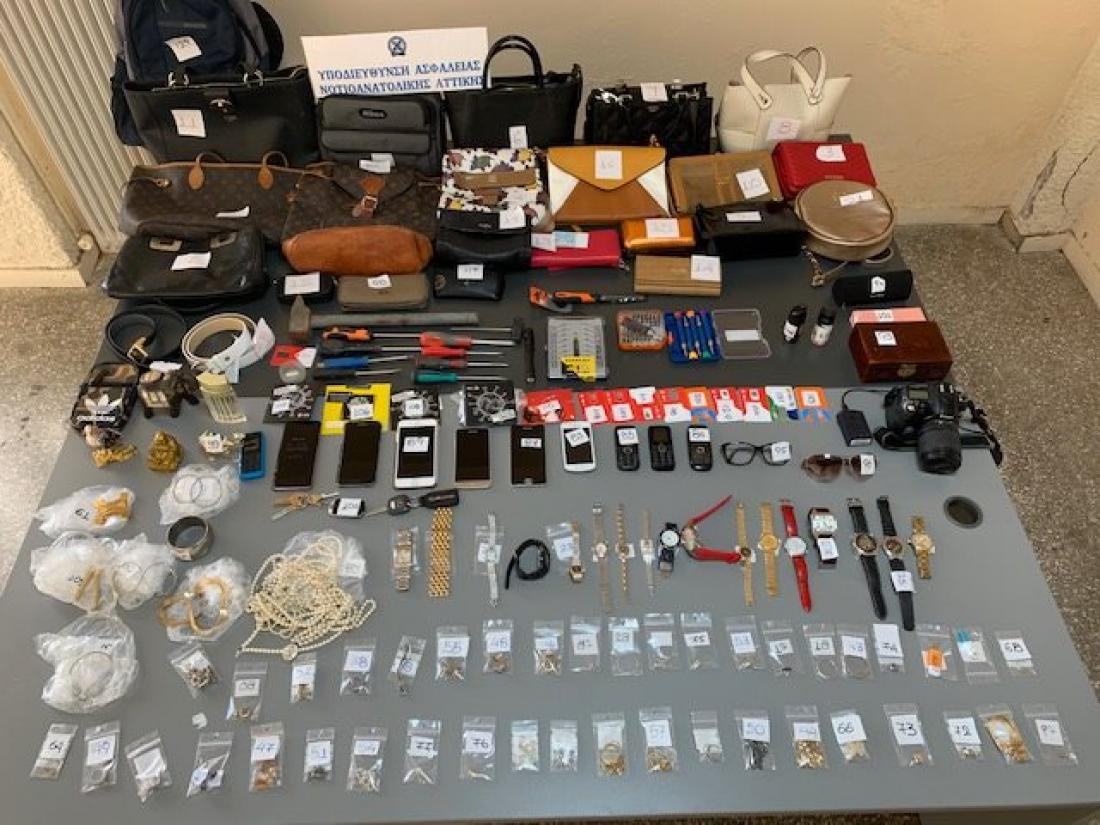Στην κατοχή τους βρέθηκαν και κατασχέθηκαν πλήθος από ρολόγια χειρός, κοσμήματα, γυναικείες τσάντες, κινητά τηλέφωνα και κάρτες sim , δύο σπρέι πιπεριού, διαρρηκτικά εργαλεία, το χρηματικό ποσό των επτακοσίων ευρώ, καθώς και δύο "επιχειρησιακά" αυτοκίνητα που χρησιμοποιούσαν για την εγκληματική τους δράση.