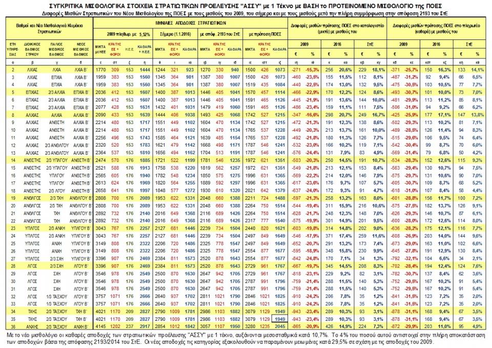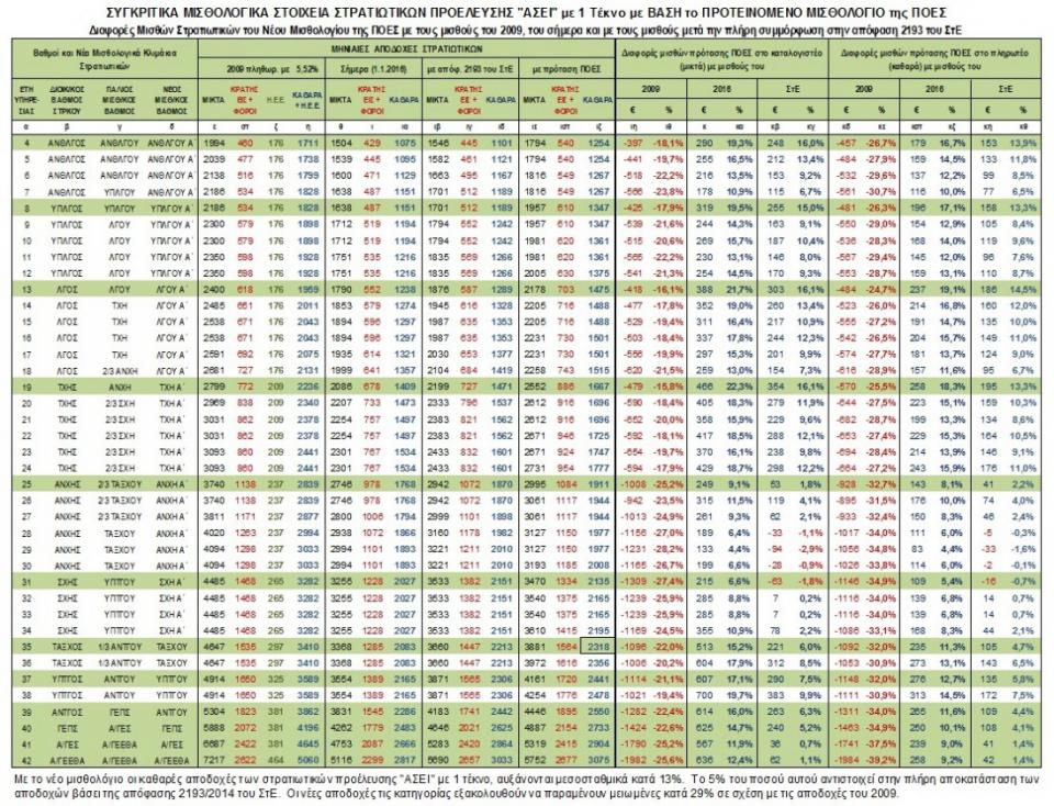 Η ΠΟΕΣ άρχισε να δημοσιεύει πίνακες με τους των στρατιωτικών όπως θα πρέπει να διαμορφωθούν με την εκτέλεση της απόφασης του ΣτΕ.