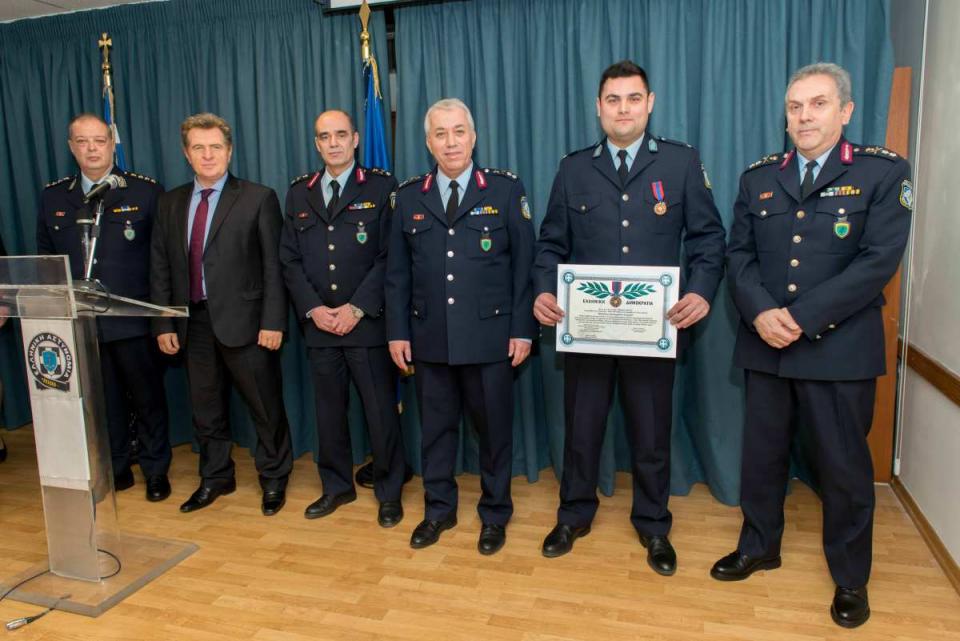 Σε ειδική τελετή που πραγματοποιήθηκε σήμερα το πρωί, στο Αστυνομικό Μέγαρο Αττικής, απονεμήθηκε Αστυνομικό Μετάλλιο του "Αστυνομικού Σταυρού", μετ' αντίστοιχου διπλώματος, στον Αστυφύλακα Τερζάκη Βασίλειο, για εξαίρετη δραστηριότητα την οποία επέδειξε κατά τη διάρκεια των καθηκόντων του, εκθέτοντας αποδεδειγμένα τη ζωή του σε κίνδυνο.