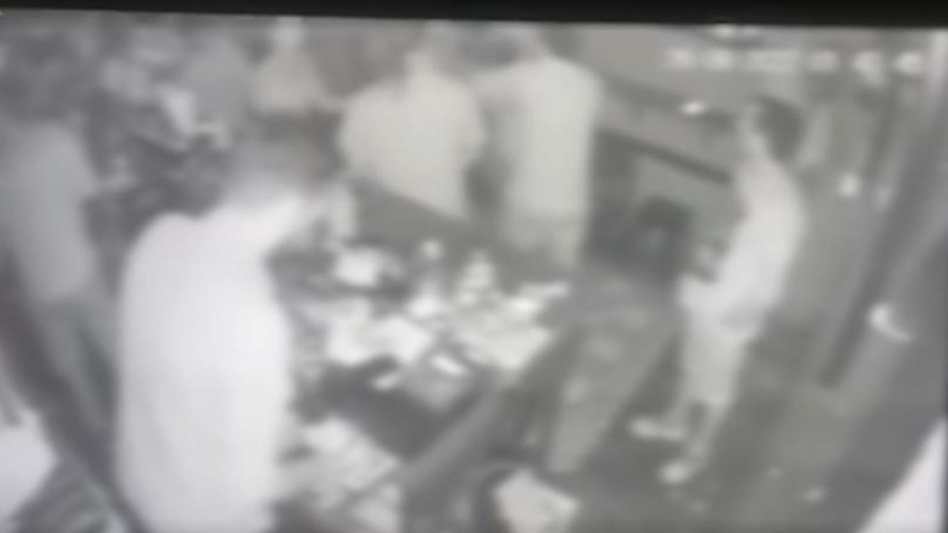 Οι δυο νεαροί βγαίνουν από την τουαλέτα του καταστήματος και κατευθύνονται προς την παρέα τους. Λίγες στιγμές αργότερα ακολουθεί και ο 42χρονος ο οποίος φαίνεται να σπρώχνει τους δυο 24χρονους, ενώ και αυτοί απαντούν με σπρωξίματα. Στη συνέχεια Ο ιδιοκτήτης του μπαρ μπαίνει στη μέση για να σταματήσει τον καυγά, ενώ έντρομος ο υπάλληλος που βρίσκεται στην εσωτερική πλευρά του μπαρ, πετάγεται έξω για να λήξει το θερμό επεισόδιο.