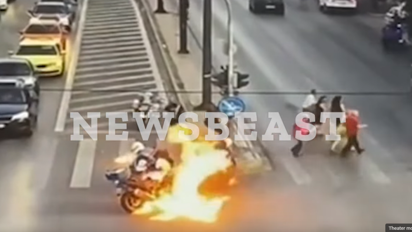 Βίντεο από κάμερα ασφαλείας κατέγραψε την επίθεση με μολότοφ κατά τεσσάρων αστυνομικών μετά από πορεία υπέρ της Παλαιστίνης, το απόγευμα της Κυριακής. Oι δράστες αδιαφόρησαν για τους πολίτες που βρίσκονταν δίπλα στους μοτοσικλετιστές της ΕΛΑΣ.