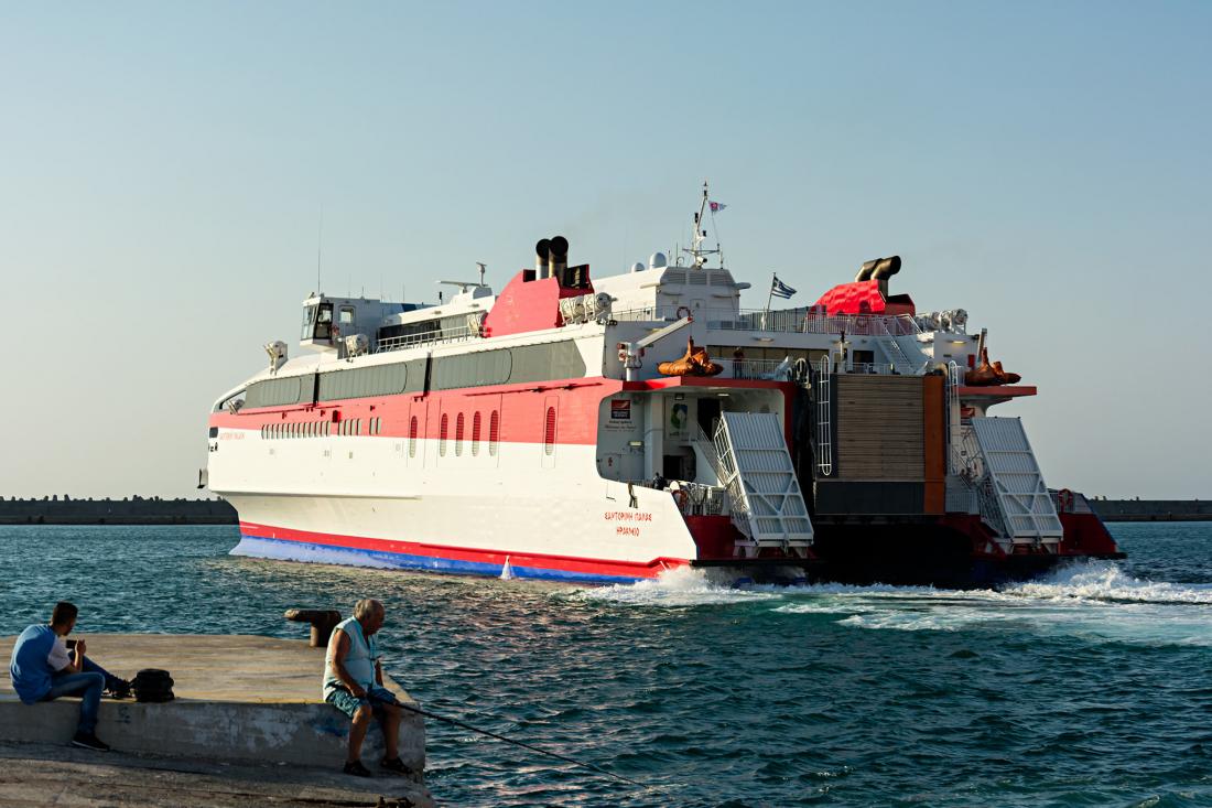 Το πλοίο ξεκίνησε το πρωί από το λιμάνι Ηρακλείου με προορισμό τη Σαντορίνη.