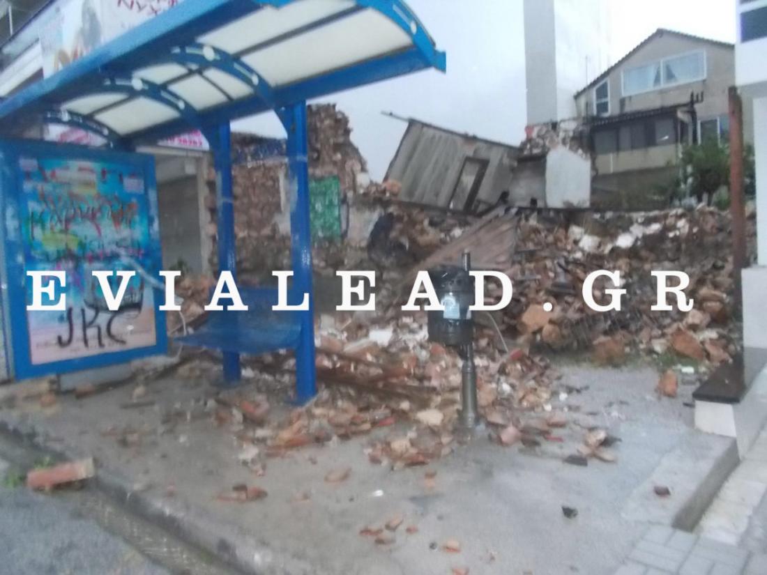 Χαλκίδα: Κατέρρευσε ακατοίκητο σπίτι πάνω σε κεντρική στάση λεωφορείου