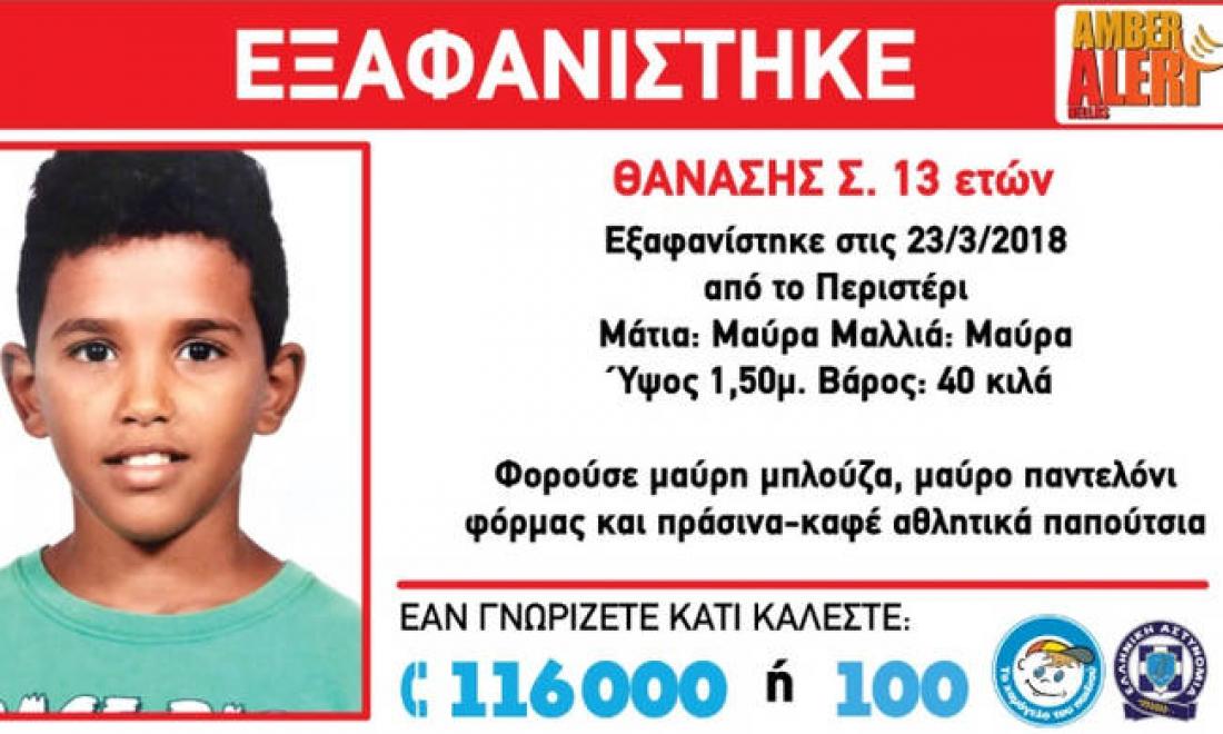 «Καθώς ο Θανάσης Σ., 13 ετών δεν έχει βρεθεί ακόμα, «Το Χαμόγελο του Παιδιού» θα προχωρήσει στην απενεργοποίηση του Amber Alert.