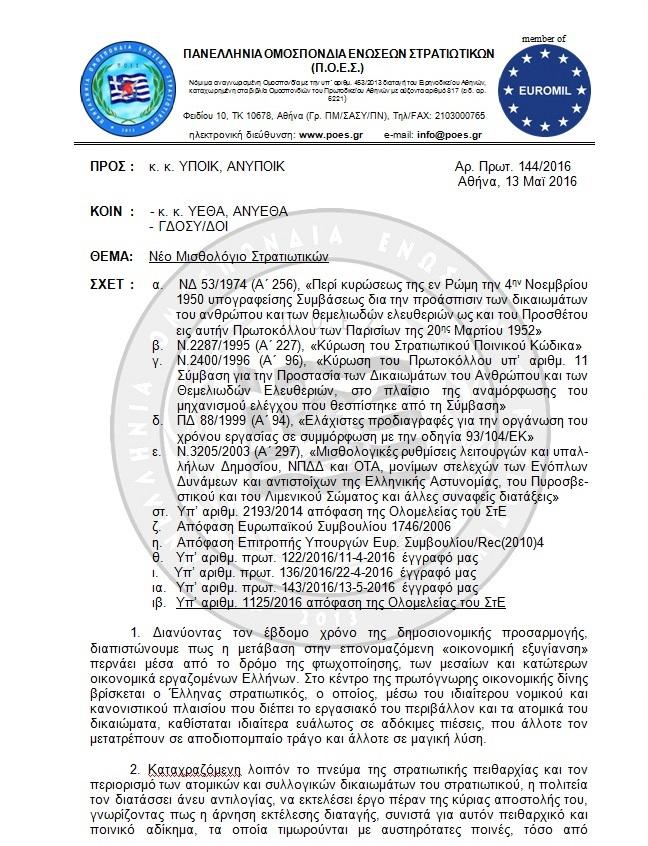 Δείτε το έγγραφο που παρουσιάζει η Πανελλήνια Ομοσπονδία Ενώσεων Στρατιωτικών