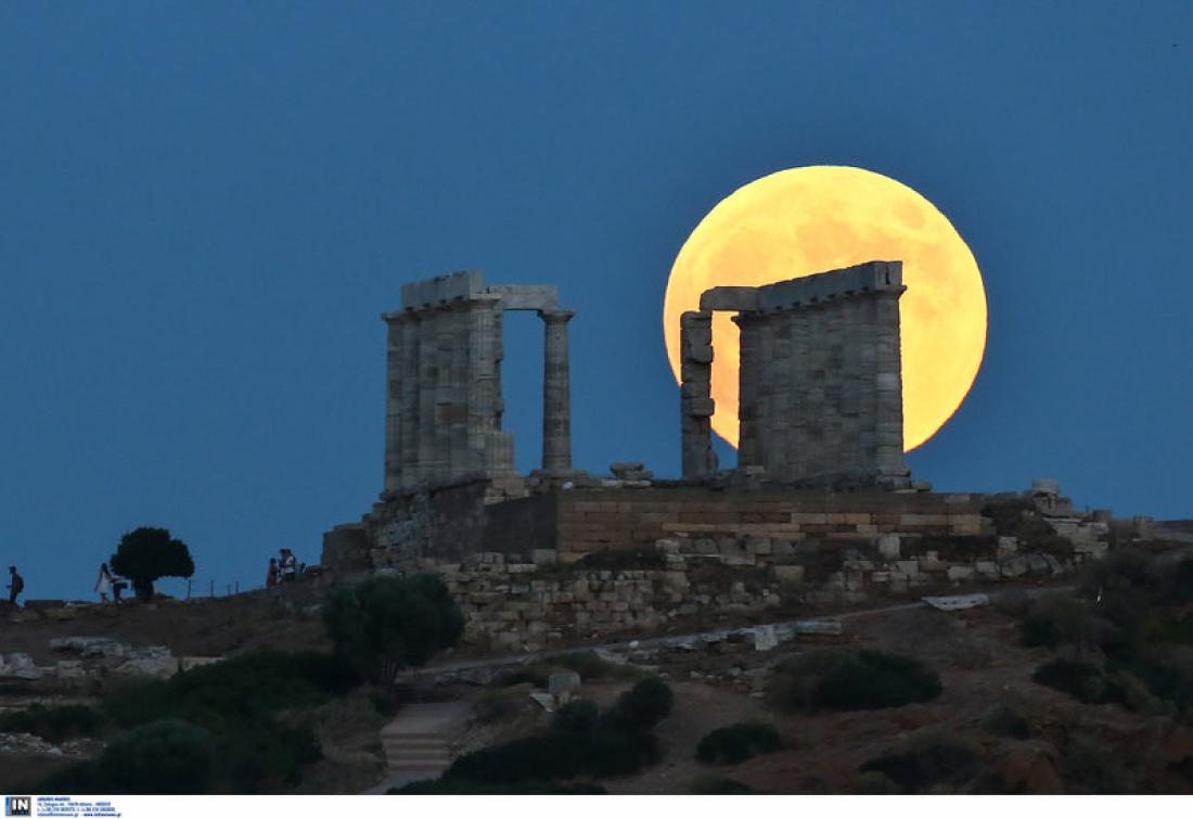 Το εντυπωσιακό φεγγάρι χαρίζει ήδη μαγικές εικόνες από τον Ναό του Ποσειδώνα στο Σούνιο, ενώ ....