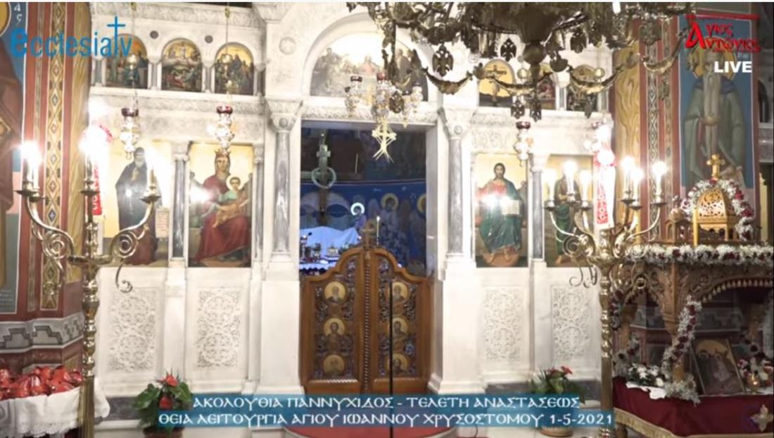 Κατ' εξαίρεσιν, φέτος, λόγω της πανδημίας του κορονοϊού, η Ακολουθία της Αναστάσεως θα αρχίσει στις 20.00, στις 21.00 θα γίνει η Ανάσταση και θα ολοκληρωθεί περίπου στις 22.30 με την Αναστάσιμη Θεία Λειτουργία.