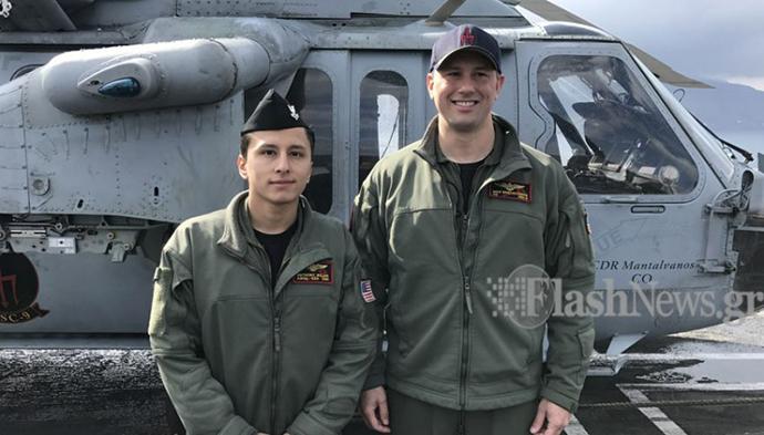 Ανάμεσα στα μέλη του πληρώματος είναι και ο Νίκος Μαντλαβάνος, ελληνικής καταγωγής, από την Κεφαλλονιά, που είναι Διοικητής του Σμήνους των Ελικοπτέρων του αεροπλανοφόρου και ο οποίος μίλησε στο Flashnews.gr, σε άπταιστα ελληνικά!