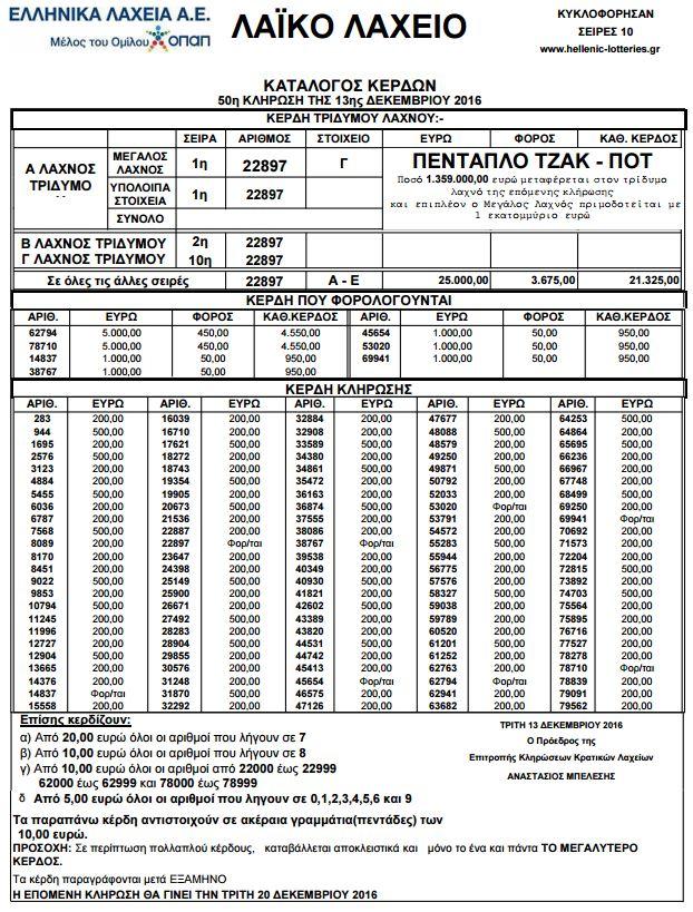 Δείτε την κλήρωση της Τρίτης 13/12 του Λαϊκού Λαχείου (Τζακ Ποτ) ΒΙΝΤΕΟ