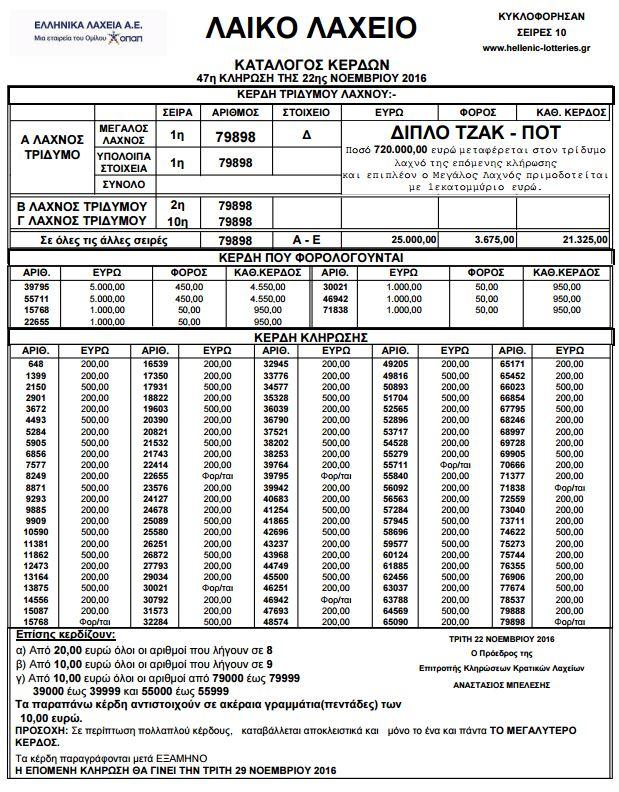 Δείτε την κλήρωση της Τρίτης 22/11 του Λαϊκού Λαχείου (Τζακ Ποτ) ΒΙΝΤΕΟ
