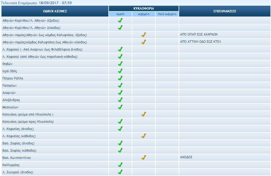Δελτίο Κυκλοφορίας: Ομαλή είναι η κίνηση στους περισσότερους δρόμους της Αττικής και μόνο σε λίγους εμφανίζεται αυξημένη.