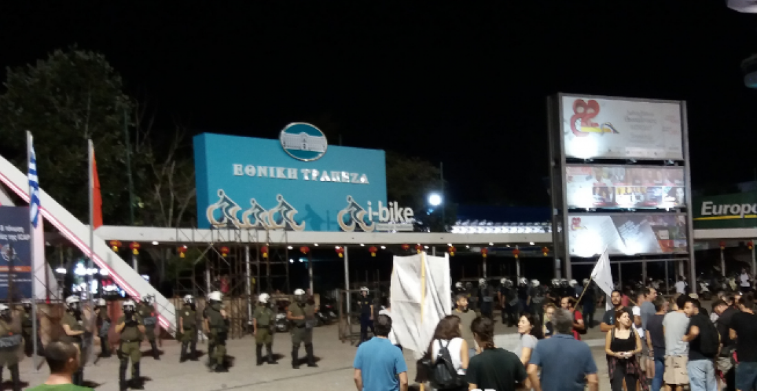 Τα άτομα επιχείρησαν να εισβάλουν μέσα στον εκθεσιακό χώρο, την ώρα που λίγα μέτρα πιο εκεί στο Βελλίδειο βρισκόταν ο πρωθυπουργός για την ομιλία του στους παραγωγικούς φορείς, αλλά τους σταμάτησαν άντρες των αστυνομικών δυνάμεων.