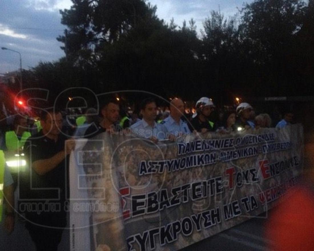 Ολοκληρώθηκε πριν από λίγο η πορεία διαμαρτυρίας που πραγματοποίησαν στο κέντρο της Θεσσαλονίκης εργαζόμενοι στα Σώματα Ασφαλείας, με αφορμή τα αυριανά εγκαίνια της 81ης ΔΕΘ. Αστυνομικοί, πυροσβέστες και λιμενικοί από διάφορα σημεία της χώρας συγκεντρώθηκαν αρχικά στο άγαλμα Βενιζέλου, απ' όπου κινήθηκαν με πορεία, και μέσω κεντρικών δρόμων της πόλης, προς το υπουργείο Μακεδονίας-Θράκης, όπου διαλύθηκαν.