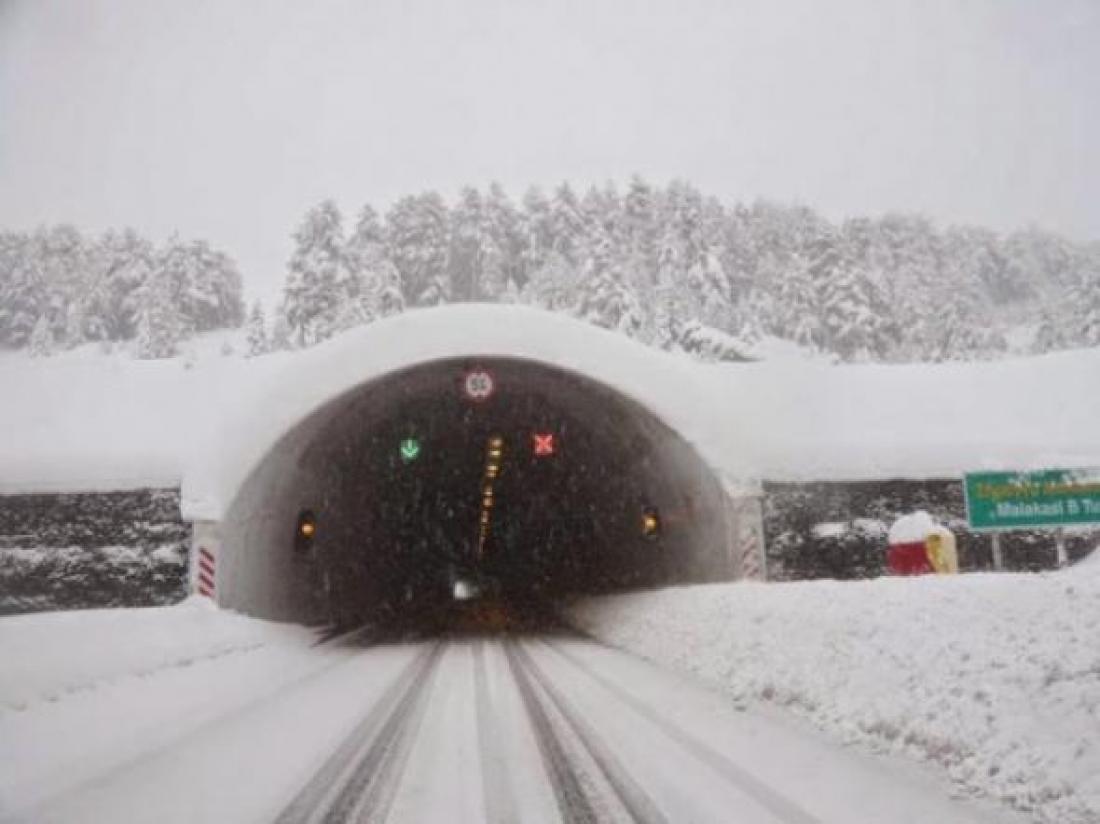 Αιτία της διακοπής η αναδίπλωση δυο νταλικών λόγω της ολισθηρότητας του οδοστρώματος εξαιτίας της συνεχιζόμενης χιονόπτωσης.